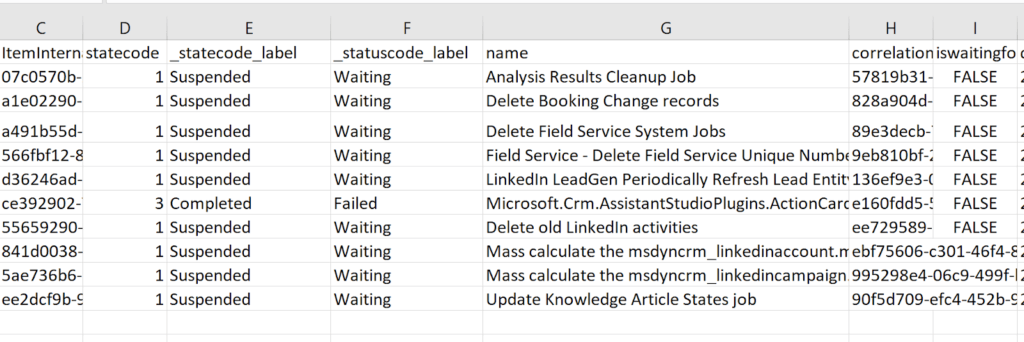 Statuscode is the name of the field in Dynamics 365 that carries the status “Waiting” and “Failed”.